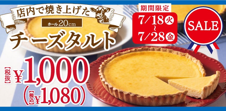第2回チーズタルト感謝価格セールのご案内【7/18(火)~28(金)限定】