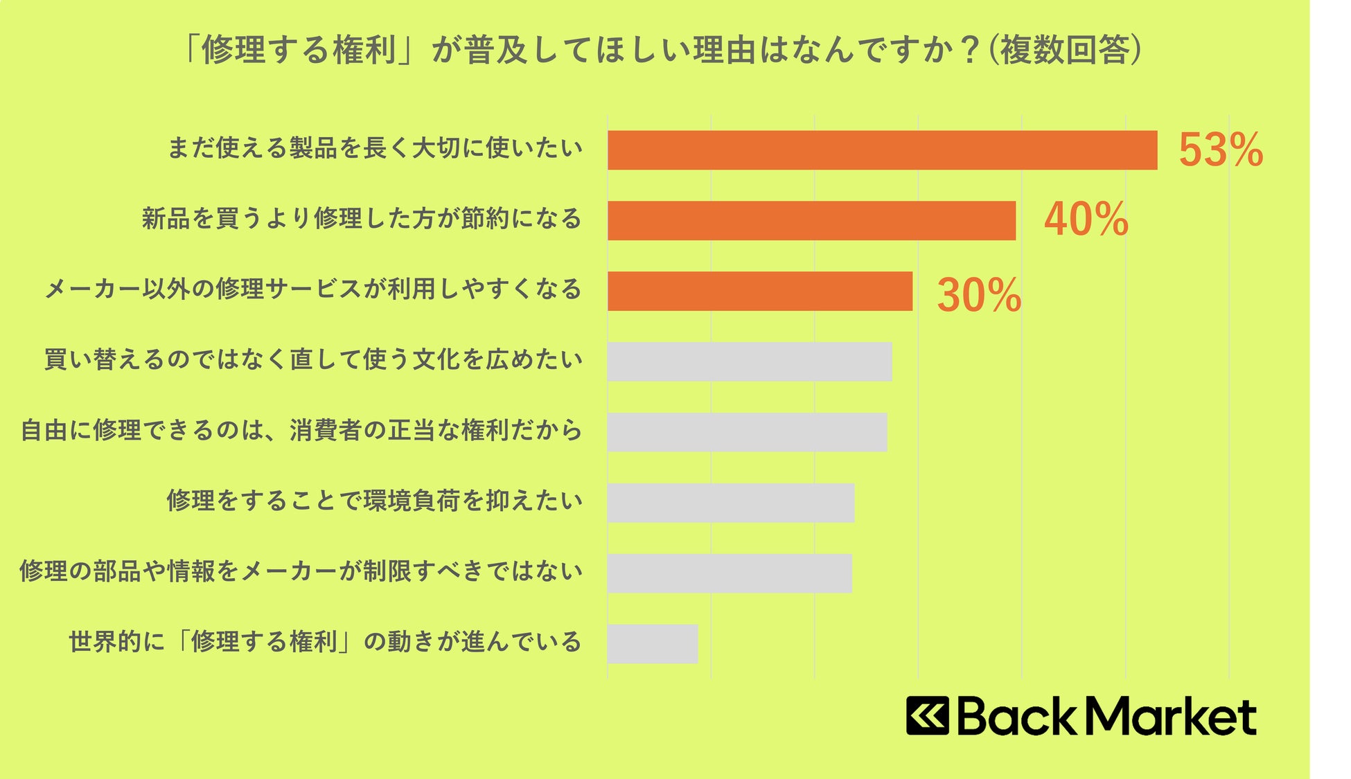 ・8割が「修理する権利」を知らない一方、節約思考や製品を長く使いたいという理由で普及を望む人も8割以上