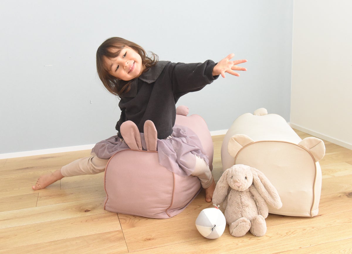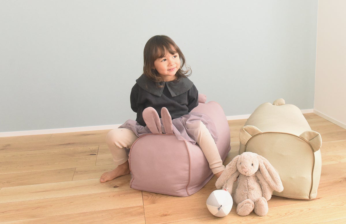 お耳としっぽが愛らしいアニマルクッションなら、子どもたちが寛ぐときの、お気に入りの相棒になってくれそう。