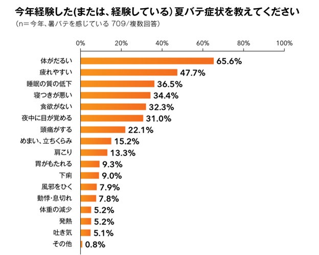 ① 夏バテ感じた人約7割。夏バテ症状の3位に「睡眠の質の低下」がランクイン