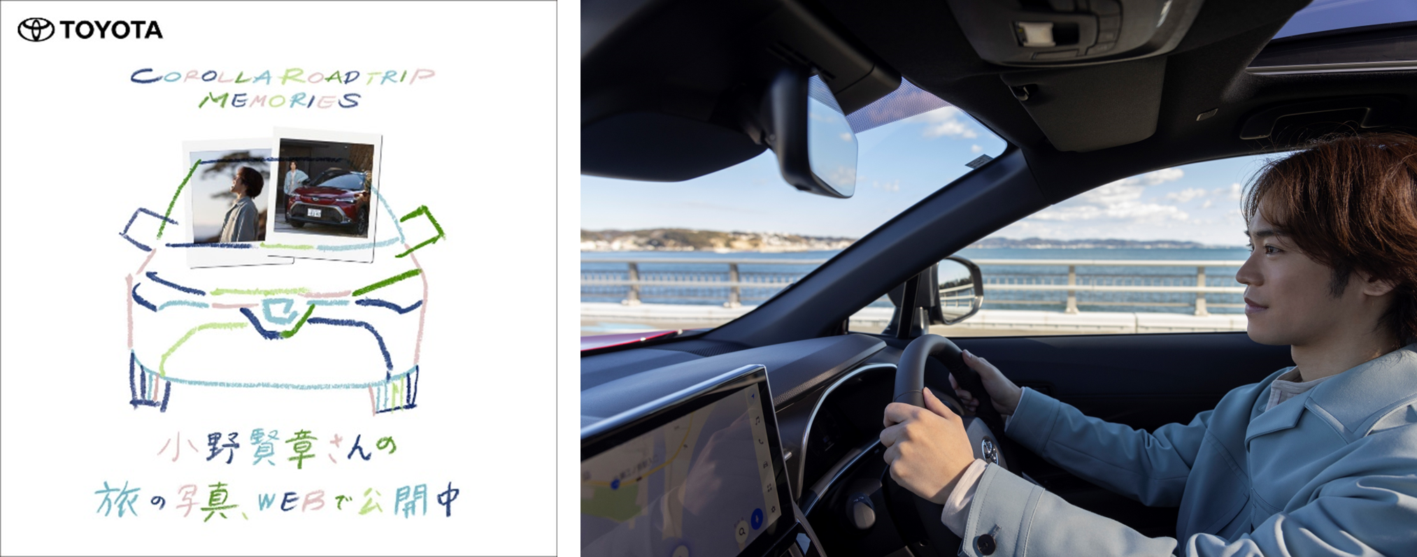 「COROLLA ROAD TRIP MEMORIES」第2弾では、小野賢章さんが思い出の地である江ノ島から葉山までカローラ クロスで巡り、2024年のさらなる飛躍に向け、心身ともにリフレッシュ&アップデートする「自分アップデート旅」を実施する企画です。多忙な日々では中々取れない丸一日の「のんびり時間」を満喫いただき、旅の中で小野さんの「心のチャージ」ができたスポット・シーンを写真に収めていきます。