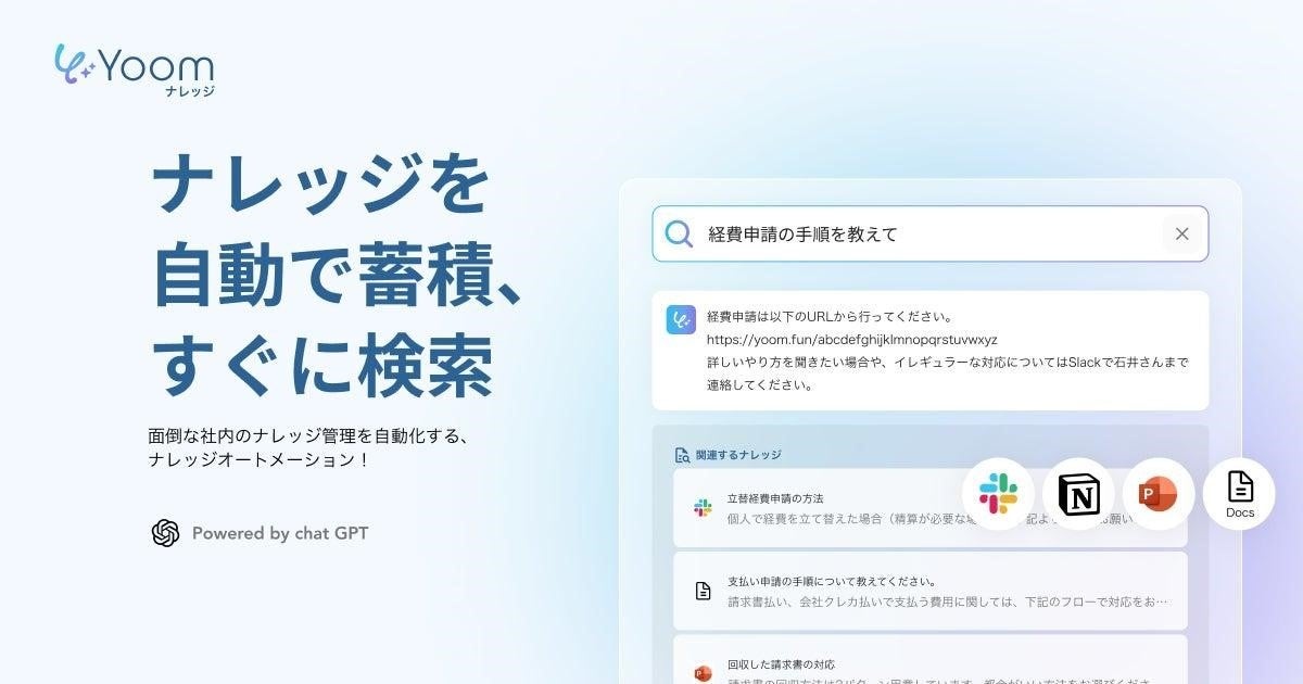 ChatGPTを活用したAIナレッジベース「Yoomナレッジ」「データソースハイライト」機能をリリース~社内文書の検索時間を大幅カット~
