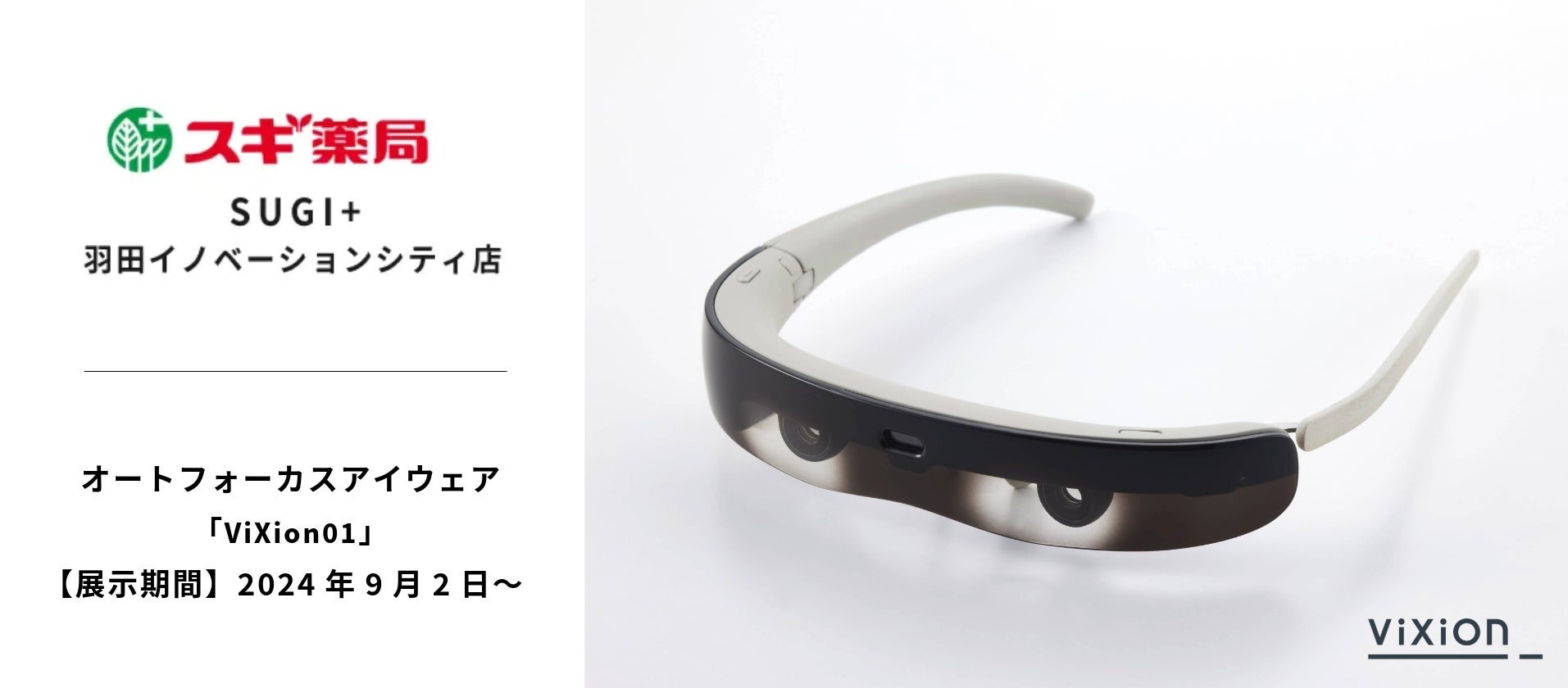 オートフォーカスアイウェア「ViXion01」を開発・販売するViXion株式会社(東京都中央区、代表取締役社長:南部誠一郎、以下ViXion)は、2024年9月より、株式会社スギ薬局(本社:愛知県大府市/代表取締役社長:杉浦克典)が運営する「SUGI+(スギプラス)⽻⽥イノベーションシティ店」にて、ViXion01の展示を開始しました。