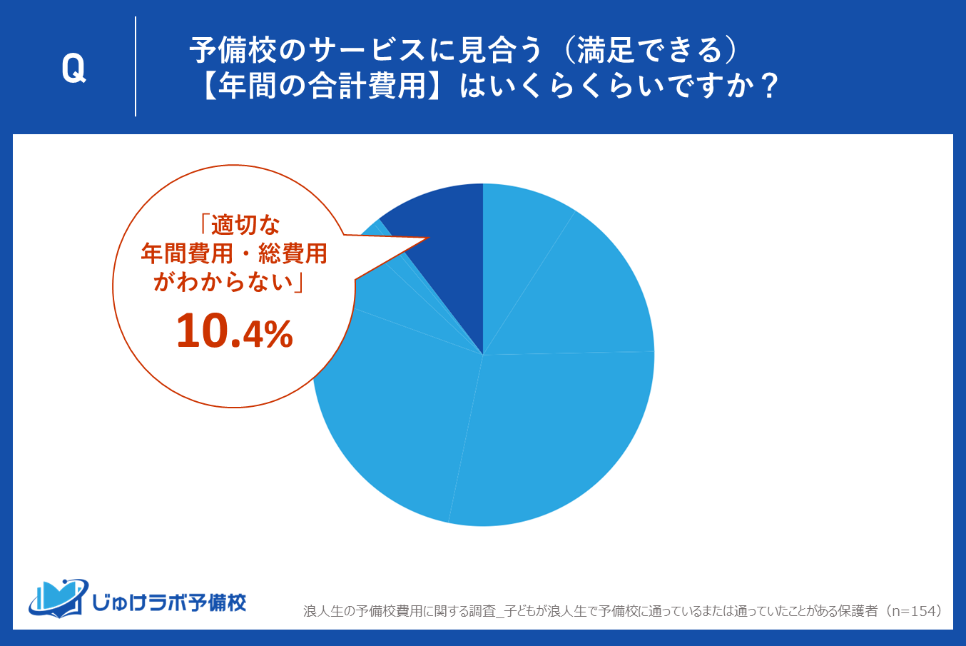 一方、「適切な年間費用がわからない」と回答した保護者は10.4%(16人)となっています。年間の教育費用を見越した際、具体的な価格帯や予備校・塾のサービスの詳細が不明確であることが考えられます。この点に関して、塾や予備校はサービス内容と費用の透明性を高めることで、保護者の不安を軽減することが求められるでしょう。