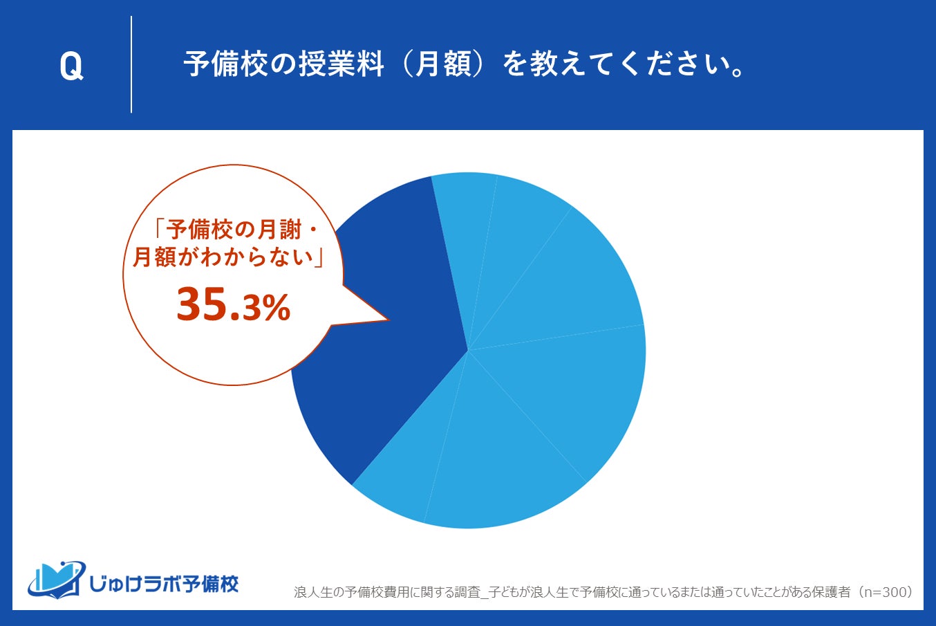 ■浪人生の月額教育費、多くの保護者が5万円以上10万円未満の支出。しかし、驚くべきは3割以上の保護者が「月額不明」と回答