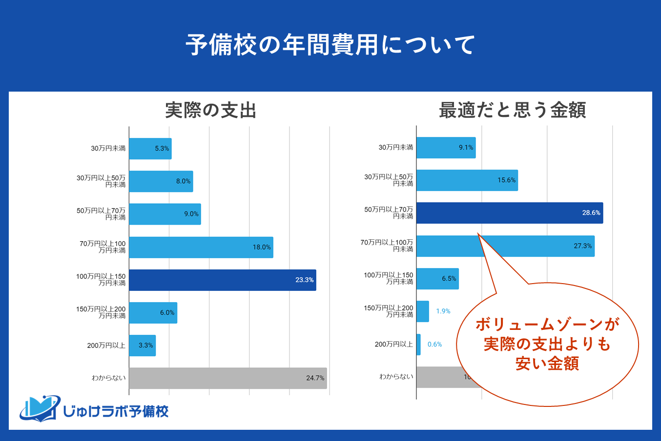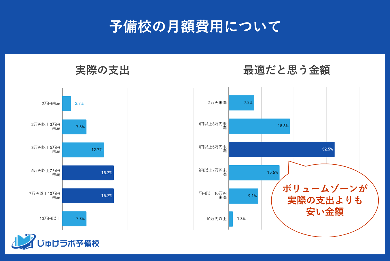 予備校・塾の月謝・年間費用で実際の支出と保護者の考える適正価格にずれが