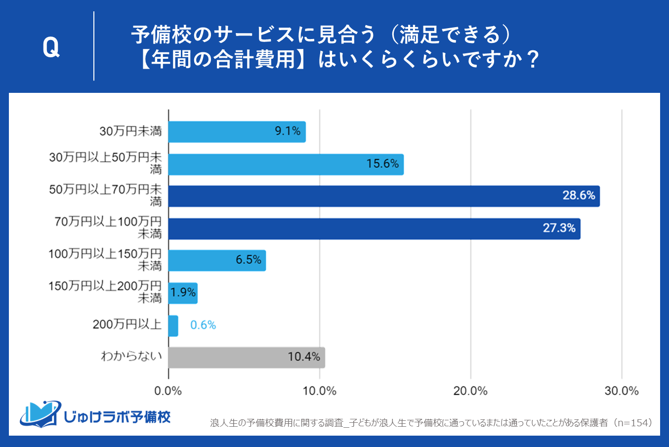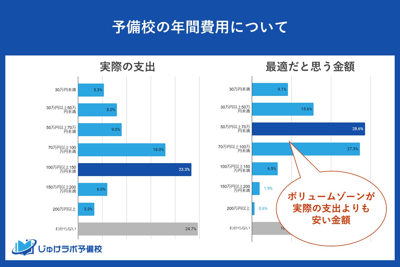 浪人生の保護者が1年間の塾・予備校費用として適切と感じる価格帯に関する調査結果がわかりました。