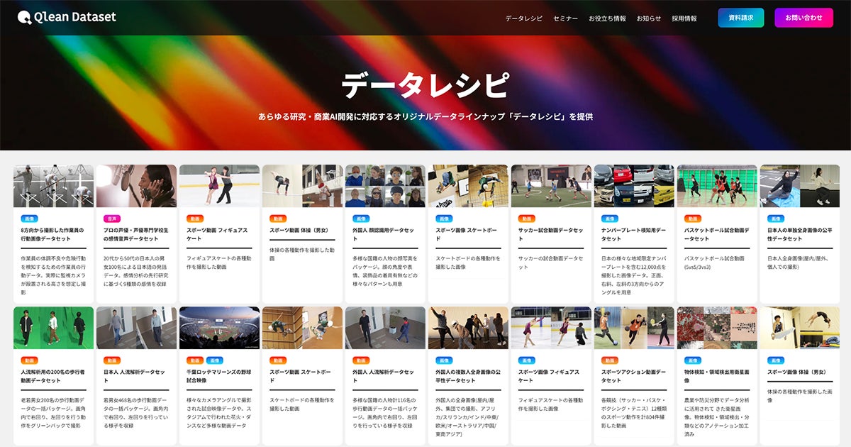 『データレシピ』は、『Qlean Dataset』における商用利用可能なオリジナルデータラインナップです。