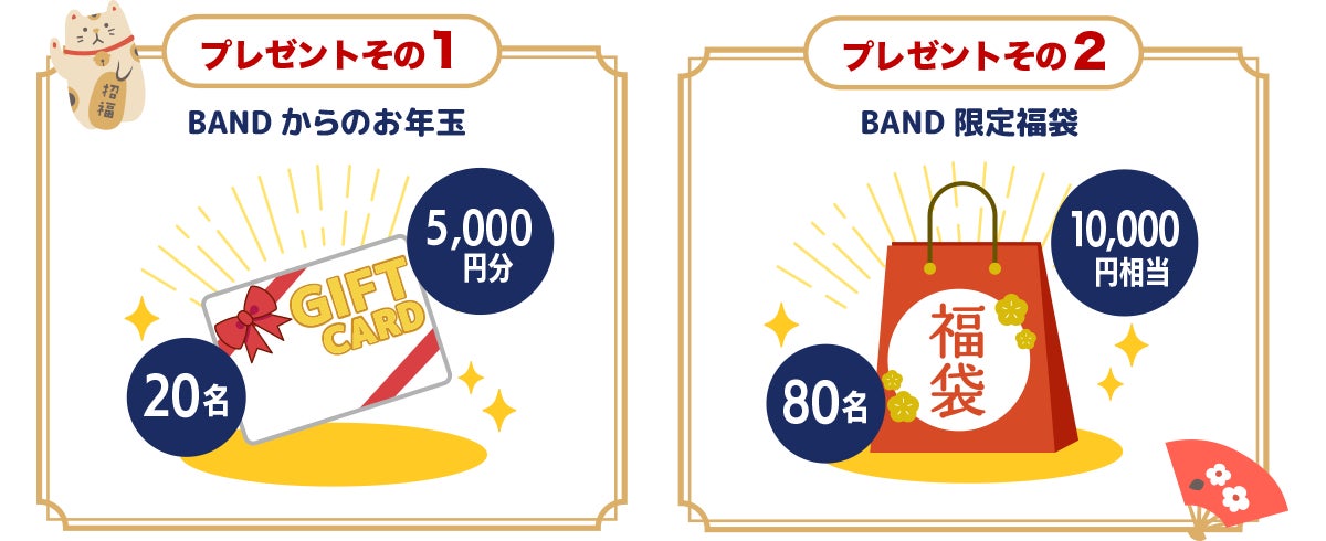 日頃からBANDをご利用いただいている皆様への感謝を込めて、今年もBANDを通じて、素敵な一年をお迎えいただきたいという想いを込めて、総額100万円分のお年玉と福袋が、その場で100名様に当たるスペシャルイベントをご用意いたしました。