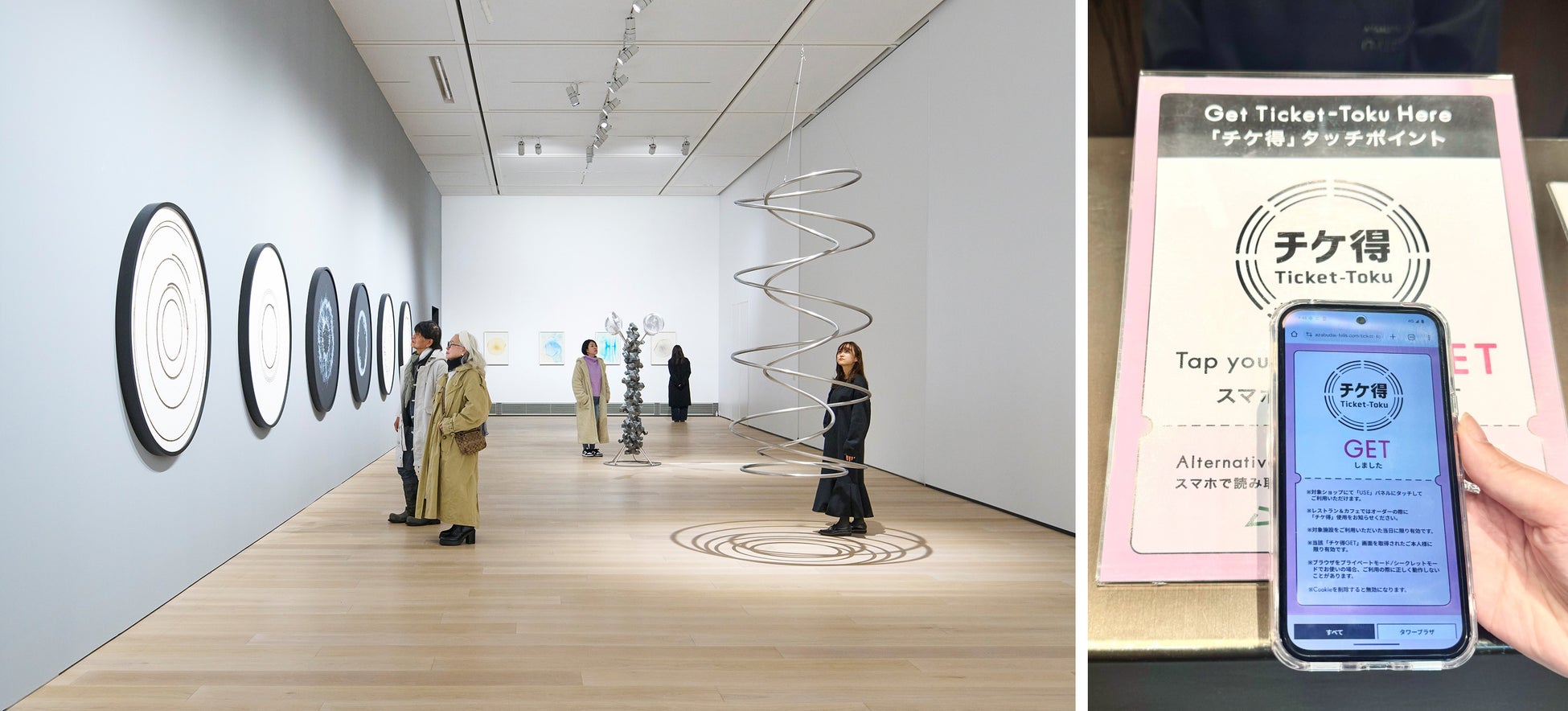 麻布台ヒルズの対象施設(森ビル デジタルアート ミュージアム:エプソン チームラボボーダレス、麻布台ヒルズギャラリー)をご利用いただいた来場者にチケ得優待を「MEET」を通じて提供しています。