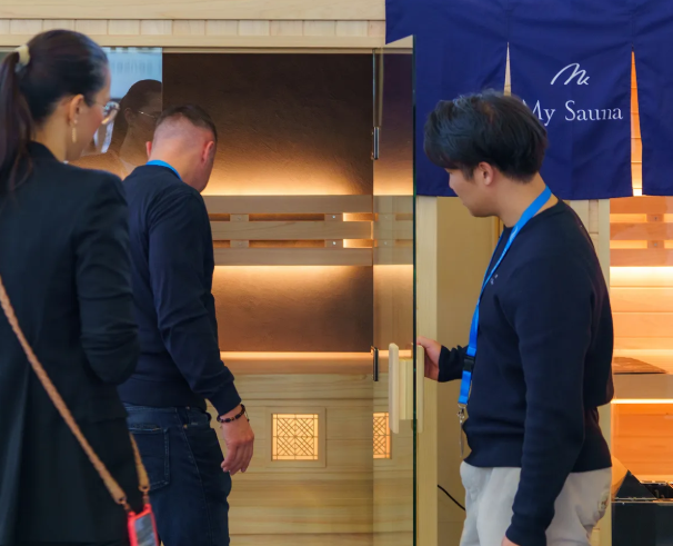 2025年10月に出展した、ドイツでの国際展示会「Aquanale2025」でも、左官オプションのBoxサウナを展示させていただきました。