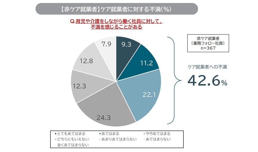 9. 「ケア就業者の仕事を引き受ける非ケア就業者に対して、企業側の支援が手薄い」と感じている割合は約7割。