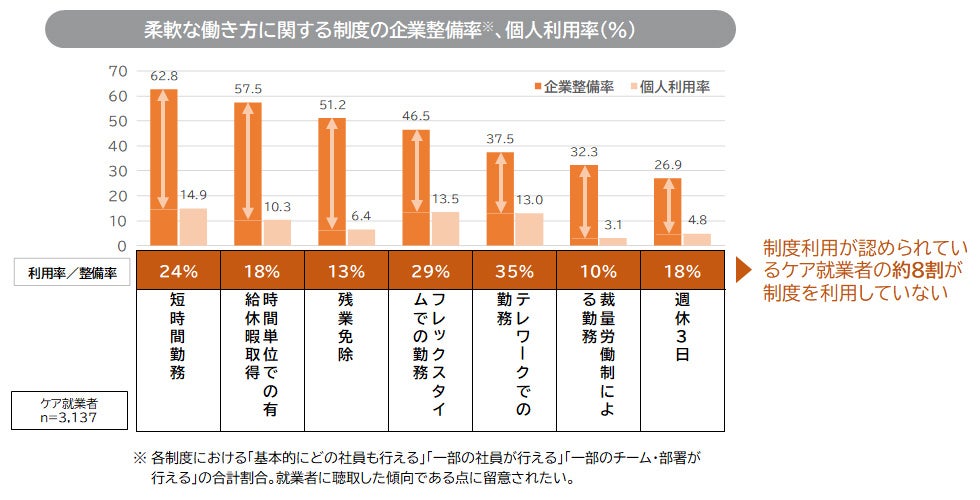 柔軟な働き方制度、整備すすむもケア就業者の利用は2割