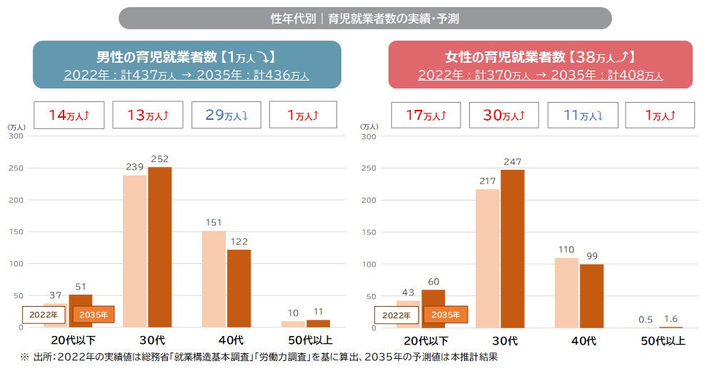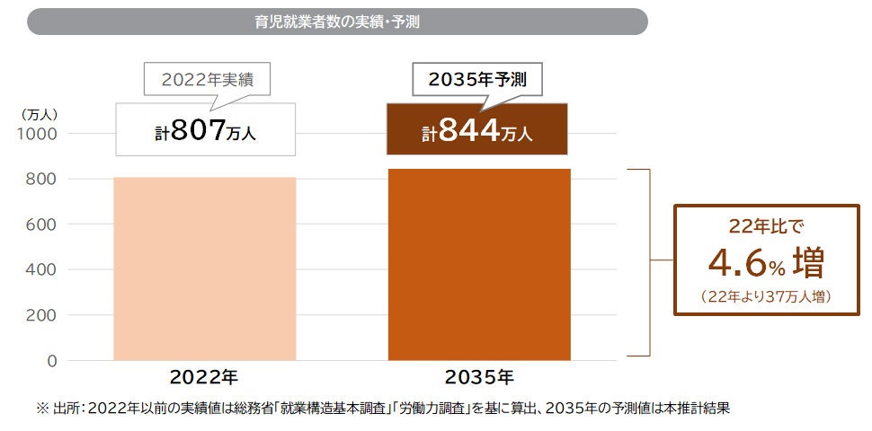 1. 2035年の育児就業者数は、2022年比で4.6%(37万人)増の844万人になる見込み。