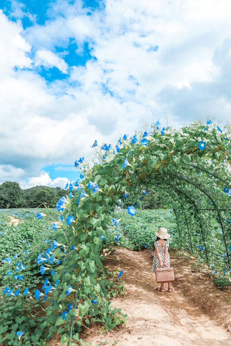 ヘブンリーブルーで作る爽やかな空色のトンネルです。今年は数を増やしバージョンアップしました。フォトスポットとしても、日陰で少し涼む場所としても。このトンネルでどんな光景が撮れるか、皆さまの写真を私たちも楽しみにしています。