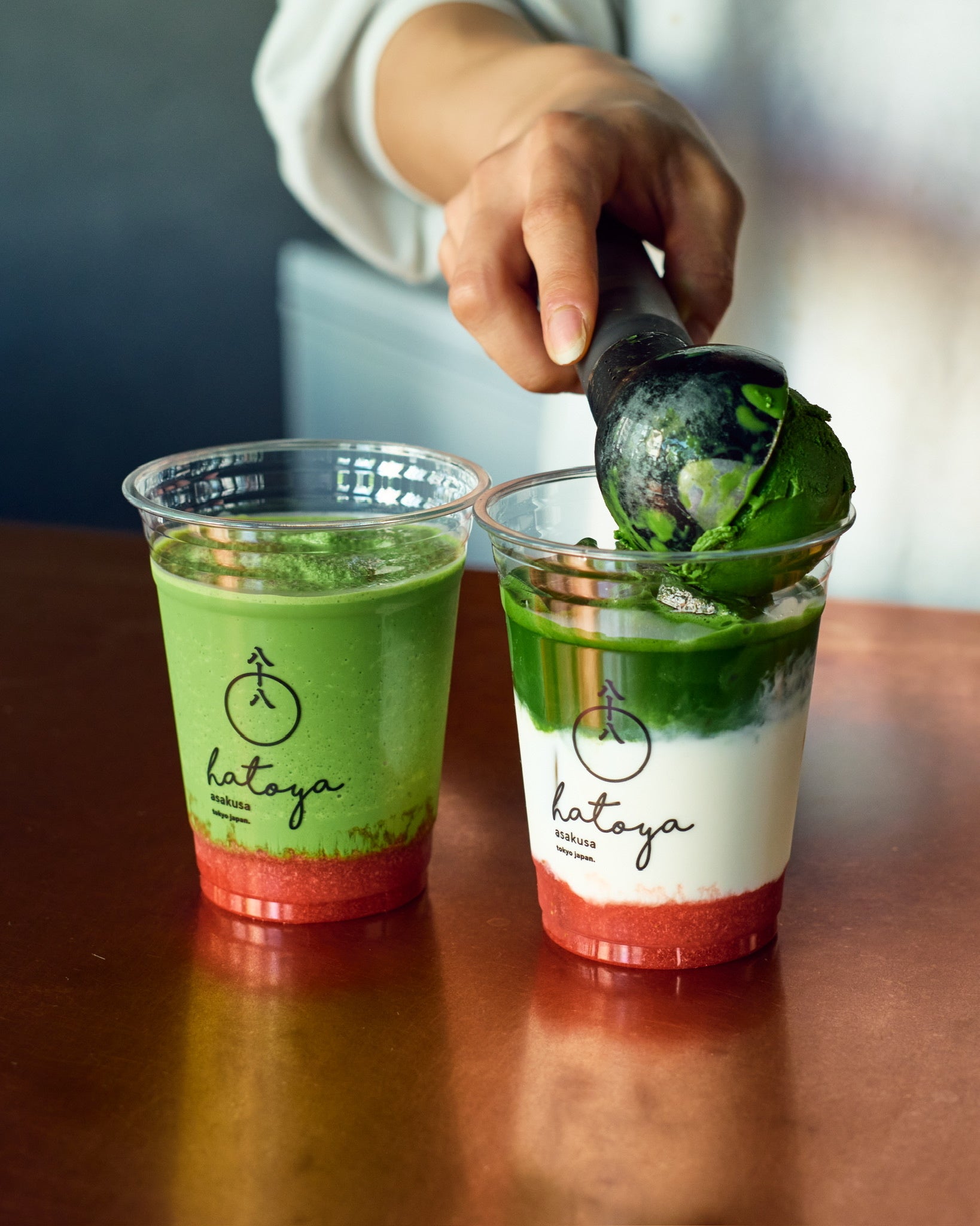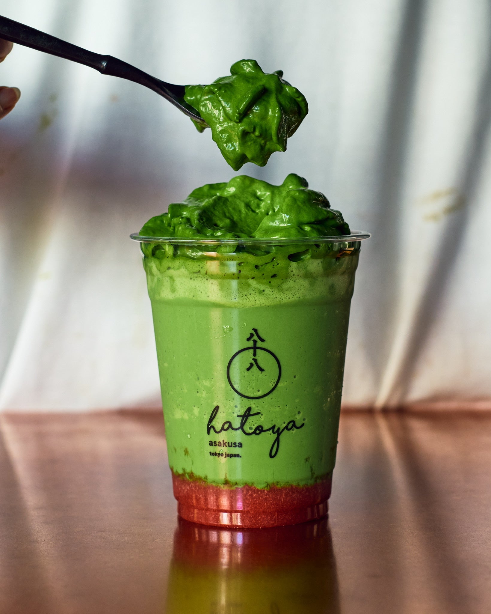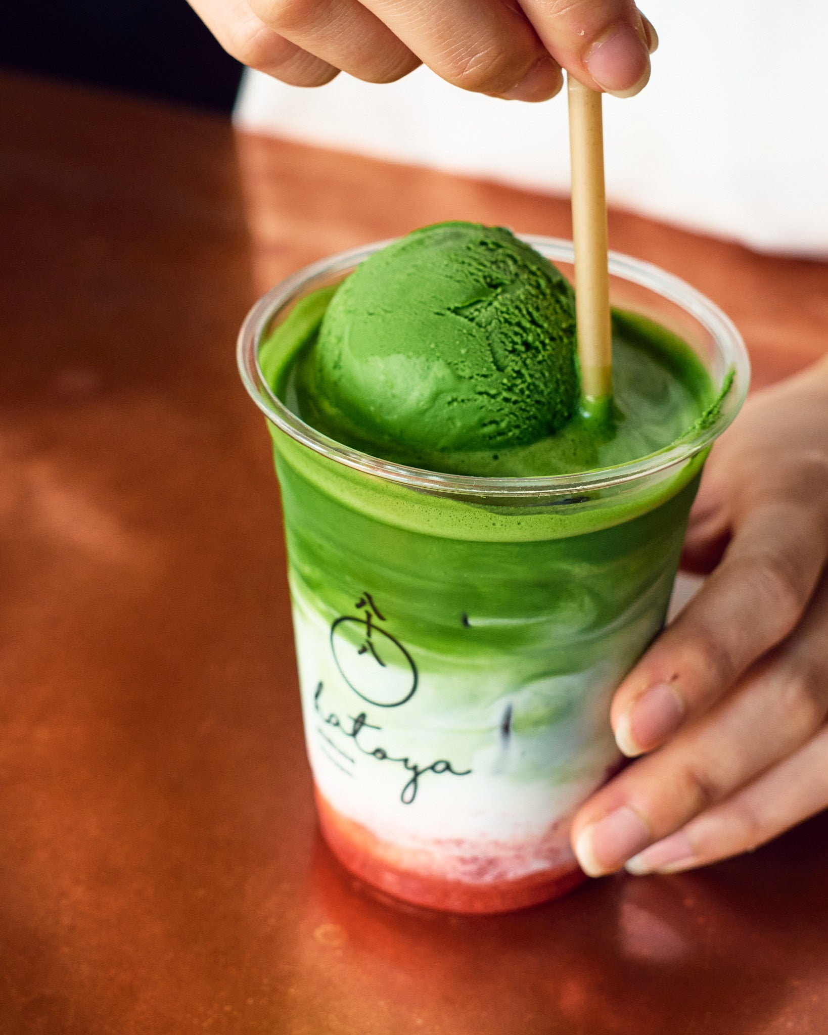 まろやかな抹茶の旨味を苺の甘酸っぱさで包みます。抹茶アイスが少しずつ溶けることで、より抹茶の濃厚な味わいをお楽しみいただけます。