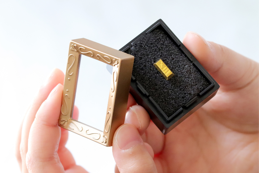 金の持つ魅力「色や光沢、重さ」を感じることことが出来ます。