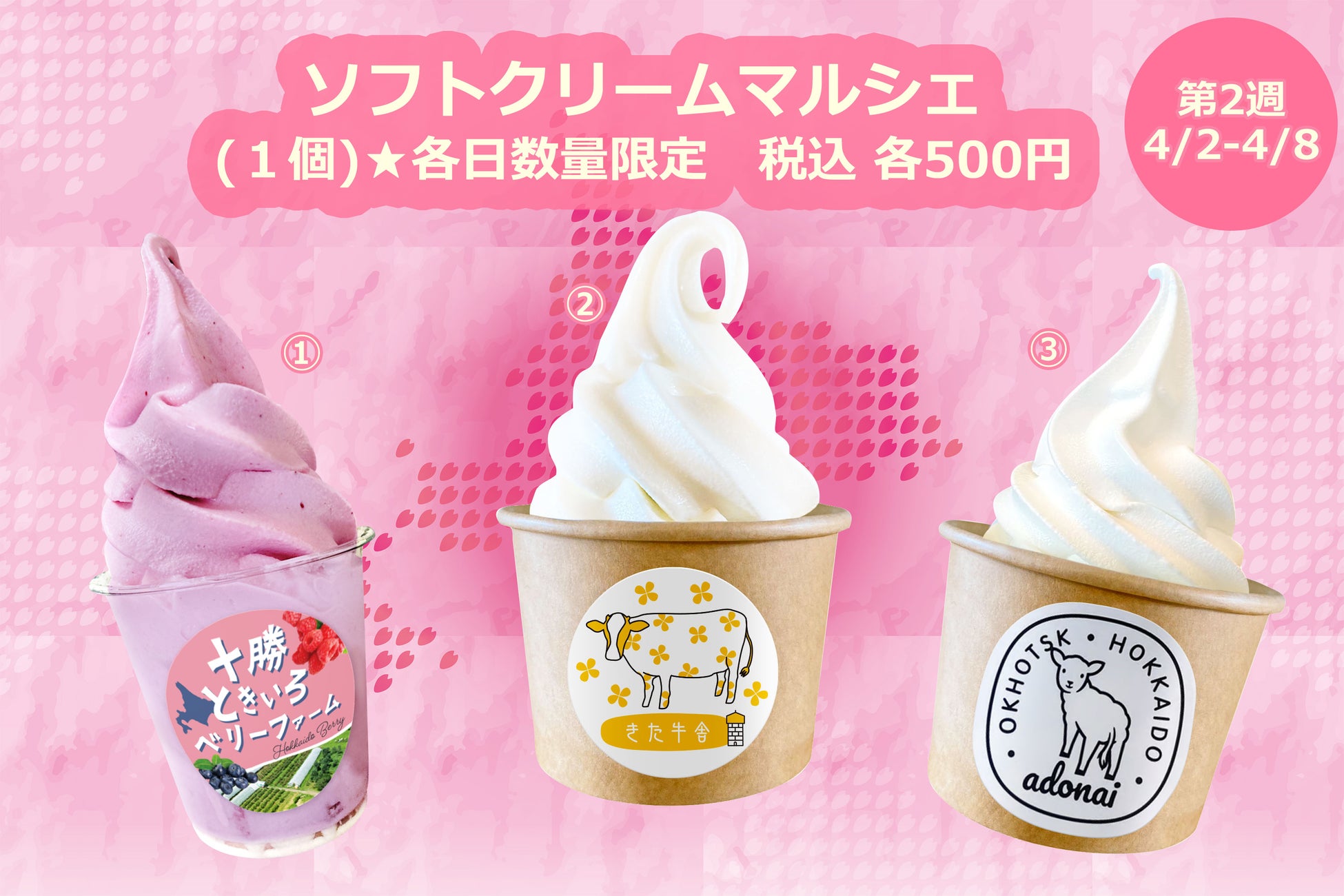 ソフトクリームマルシェ(1個)★各日数量限定 500円 ※第2週(4/2-4/8)のみ出店