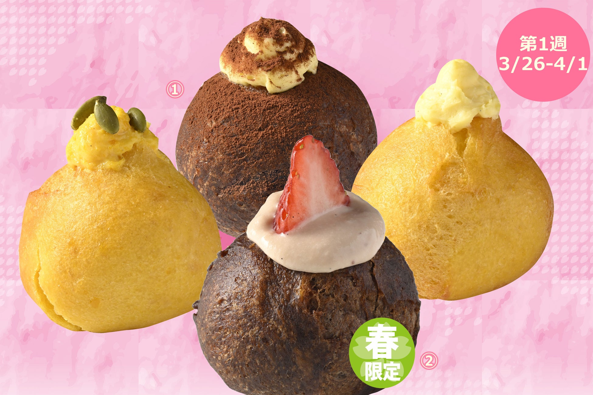 ①生ドーナッツ かぼちゃ・カカオ・カスタード(1個)450円