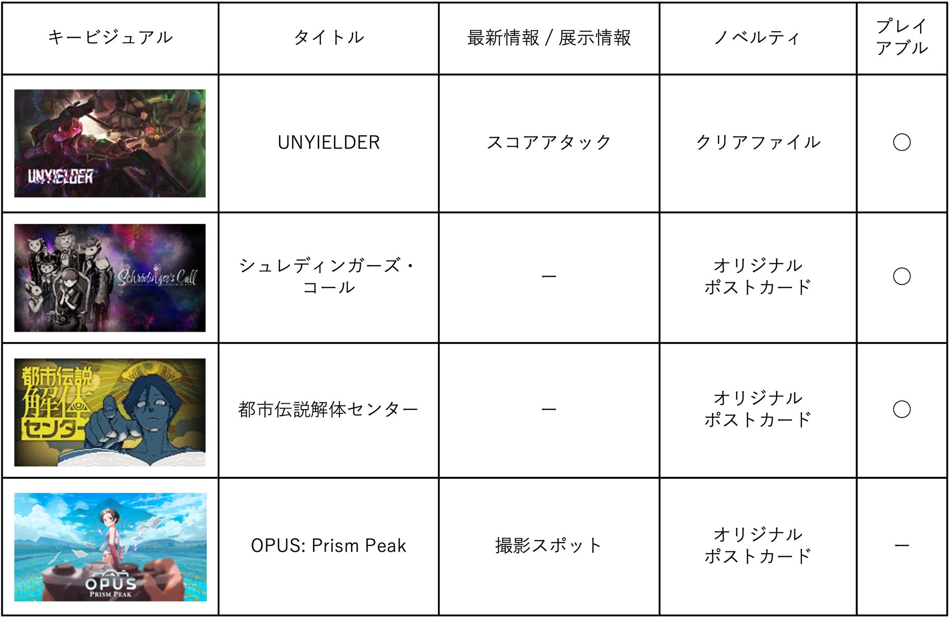 UNYIELDER、シュレディンガーズ・コール、都市伝説解体センター、OPUS: Prism Peak