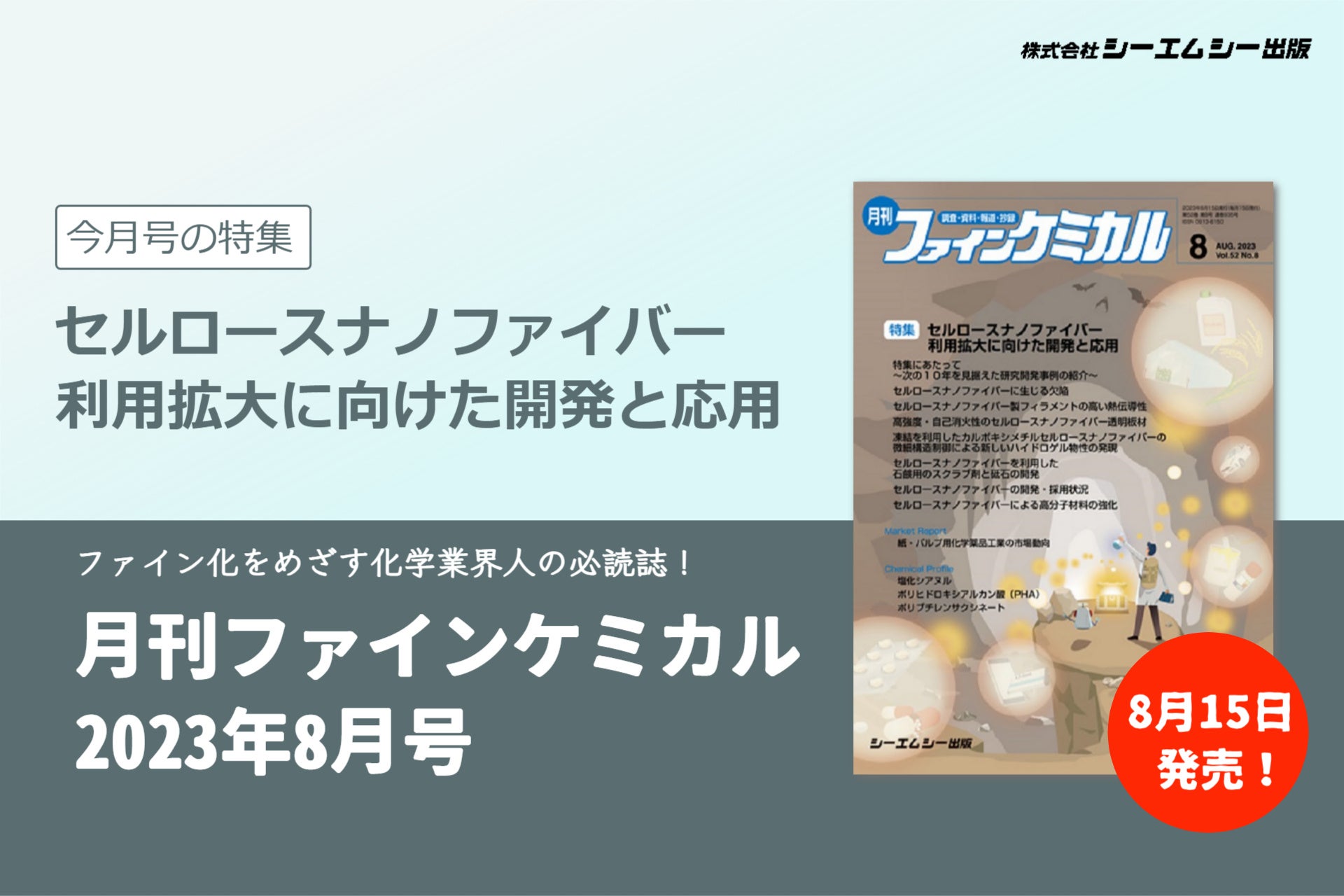 植物由来の次世代材料“セルロースナノファイバー”。利用拡大に向けた最新研究動向を特集した雑誌『月刊ファインケミカル 2023年8月号』が8月15日に発売。