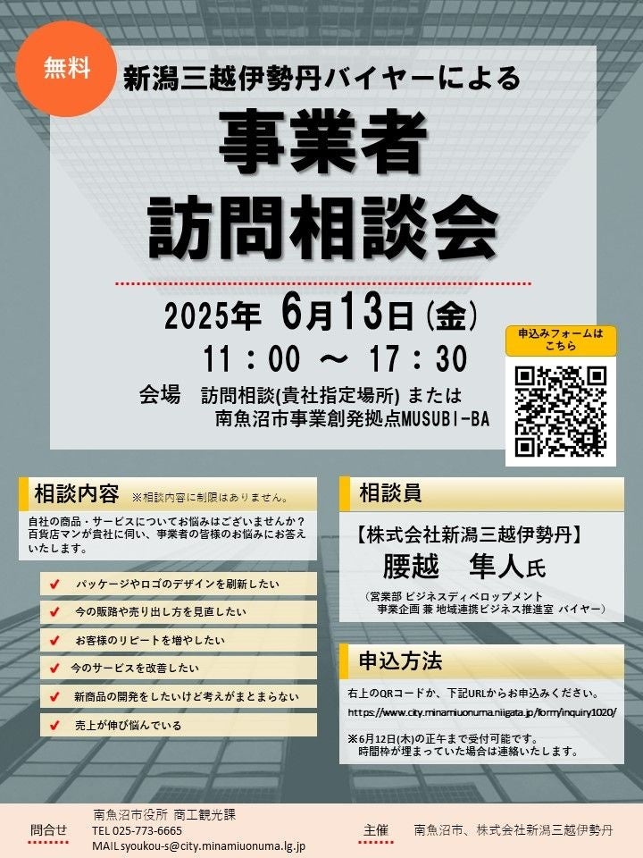 【南魚沼市】新潟三越伊勢丹バイヤーによる事業者訪問相談会の開催