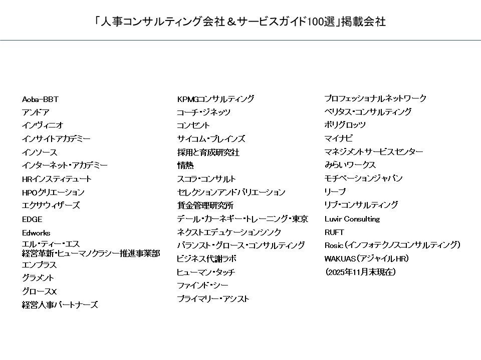 「人事コンサルティング会社&サービスガイド100選」参画会社(2025年11月末現在)