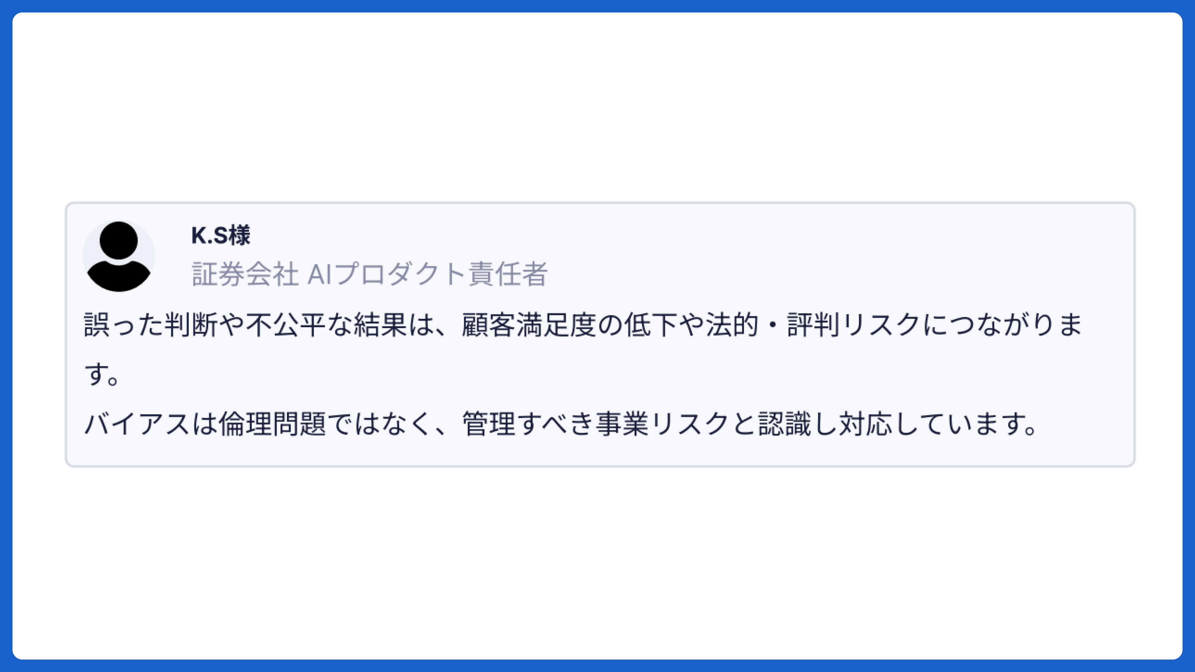 バイアス対応やコンプライアンス出力監視など、実務の温度感が伝わる構成になっています。