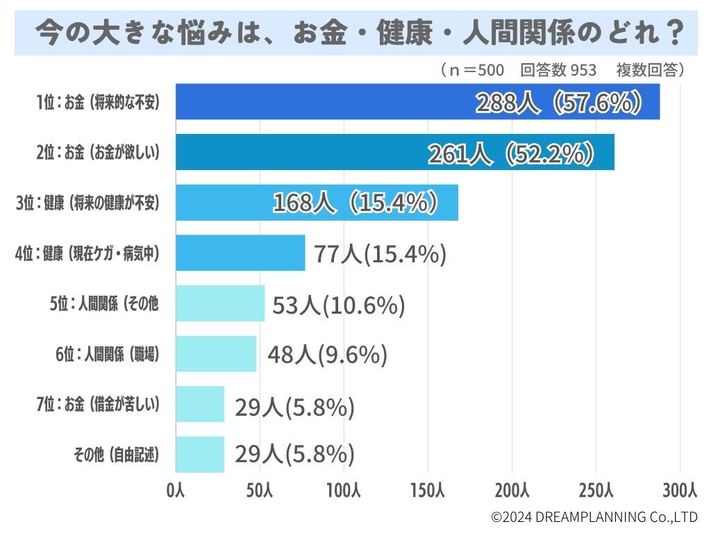今の大きな悩みは、お金・健康・人間関係のどれ?