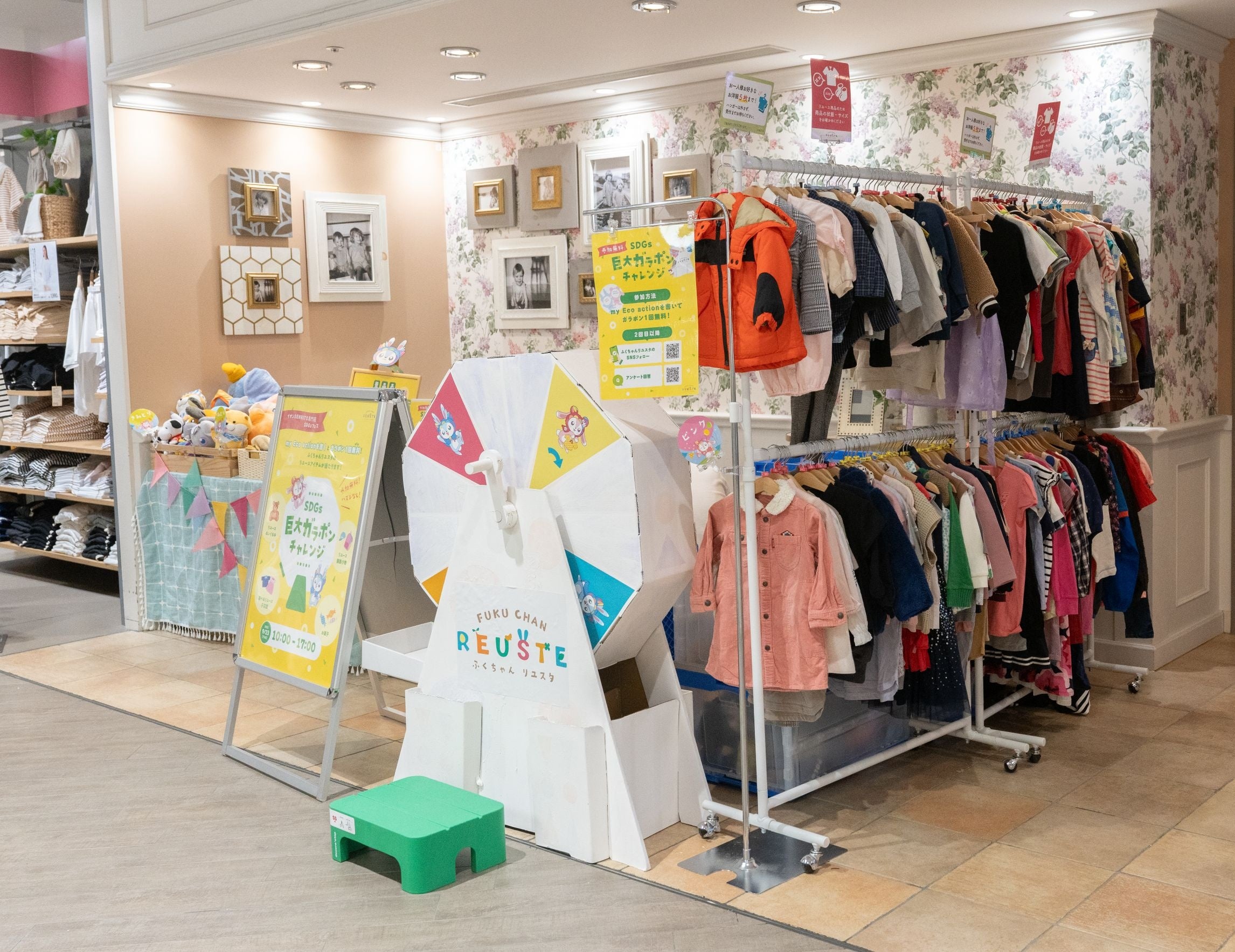 2022 年に始動した「ふくちゃんリユスタ」は、こども服や知育玩具・ベビーカーなど、使用期間の短いベビー・こども用品を、次に必要な子育て世代へ”つなぐ”ことをミッションとするキッズリユースサービスです。店舗運営だけでなく、こども向けのフリマイベントを主催するなど、さまざまな活動を通して、“もっと楽しいリユース”の輪を広げていくことを目指しています。