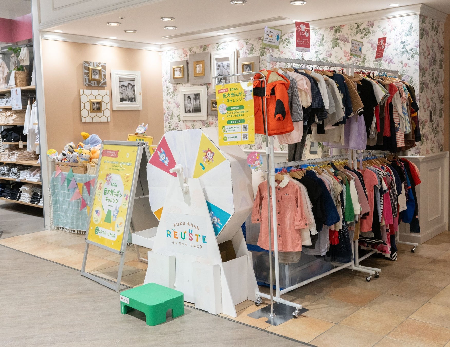 当社はこの度豊中市パートナー企業として本イベントに参加。こどもたちにSDGsや環境問題について考える機会の提供を目的とし、豊中市に位置するイオンSENRITO専門館にてイベントブース「ふくちゃんリユスタSDGs巨大ガラポンチャレンジ」を出展しました。