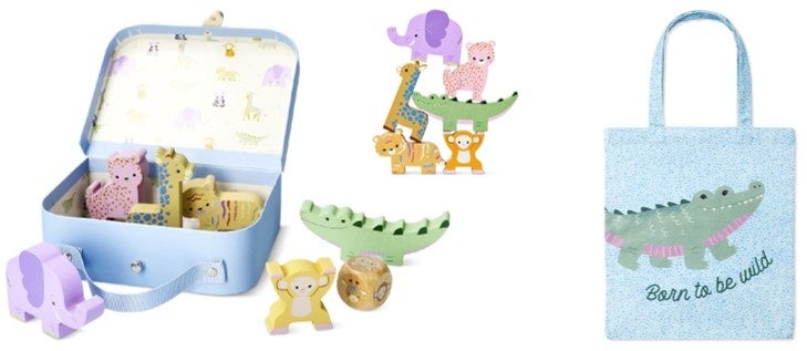 アニマルたちと一緒におでかけ!キュートなケースに入ったバランスゲーム&トートバッグは、キッズにぴったりミニサイズ!