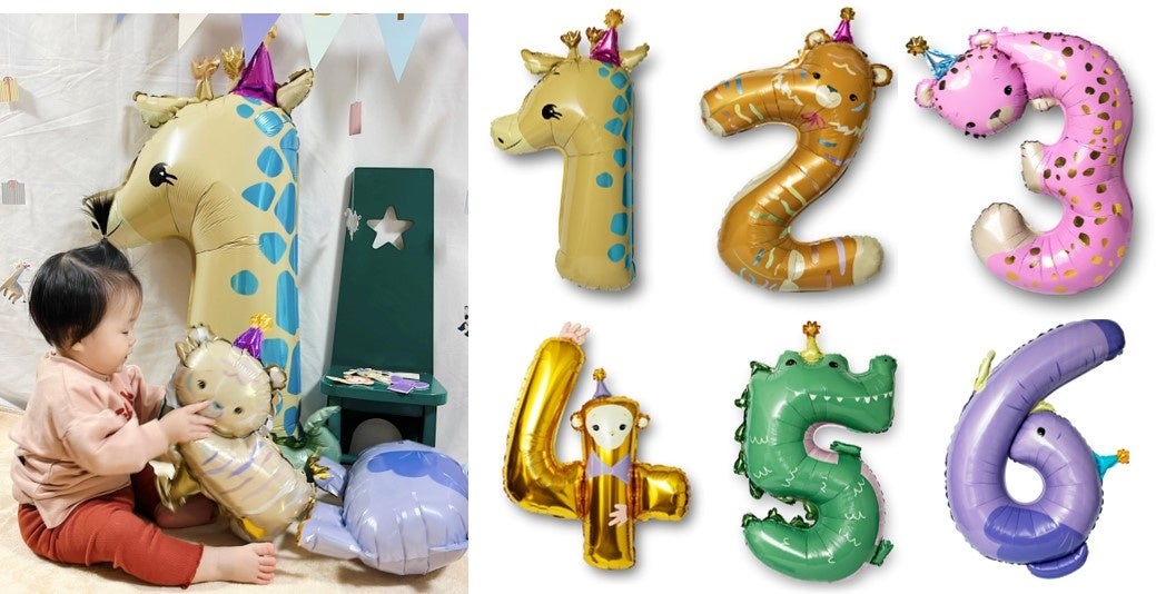 誕生日にぴったり!ビックなバルーンがそれぞれ動物の形になって登場!数字は、1~6のみの限定販売!(未就学児対象)バルーンの大きさは約80cm。