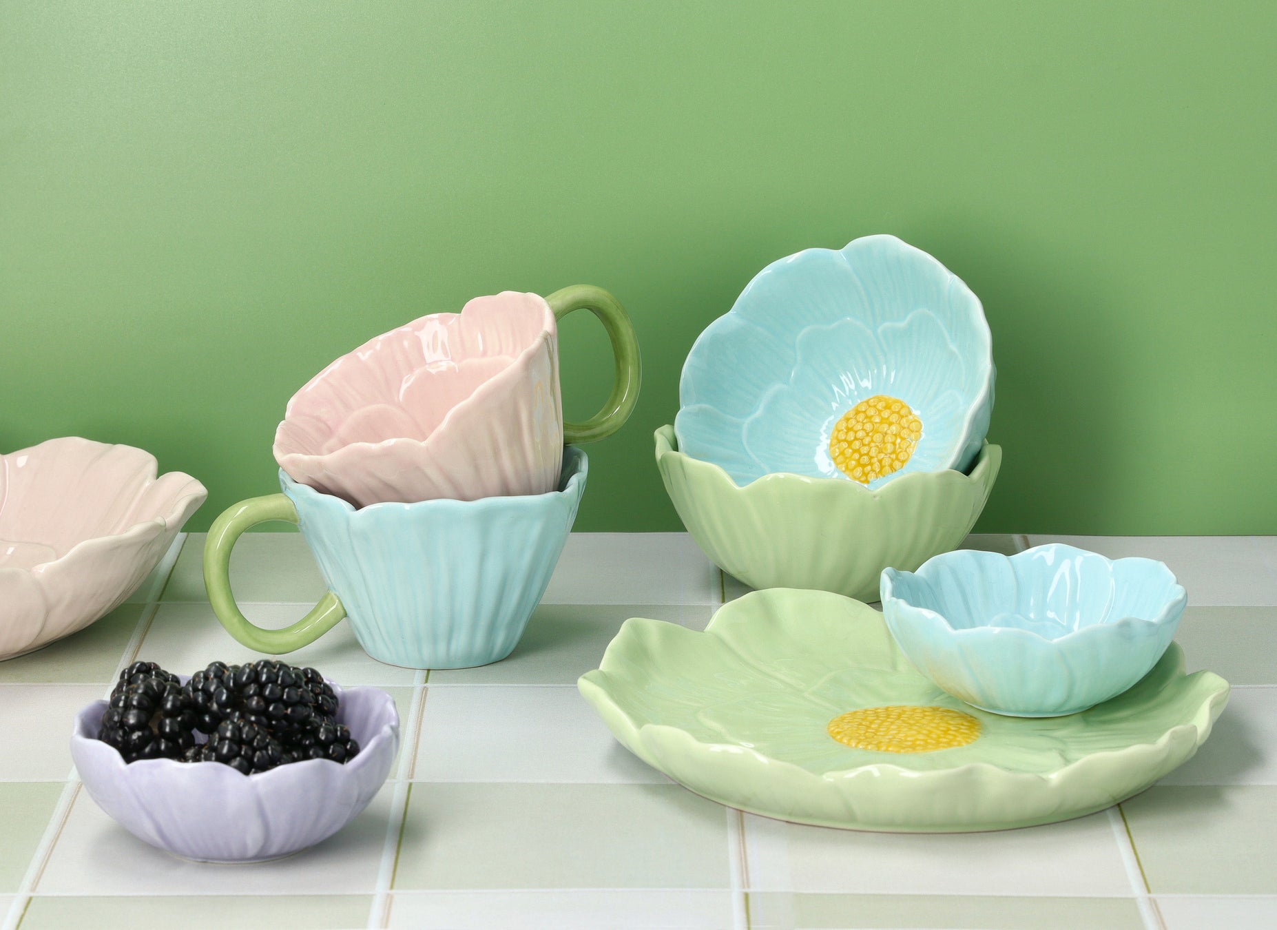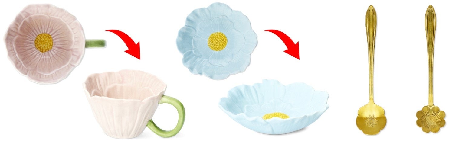お花がキュッとマグカップに。茎は持ち手に変身。ハーブティーを飲みたい気分♪フラワーボウルで何食べる?他にもサイズ違いで多数ご用意。フラワースプーンは2本セット!ティースプーンとして使えます。