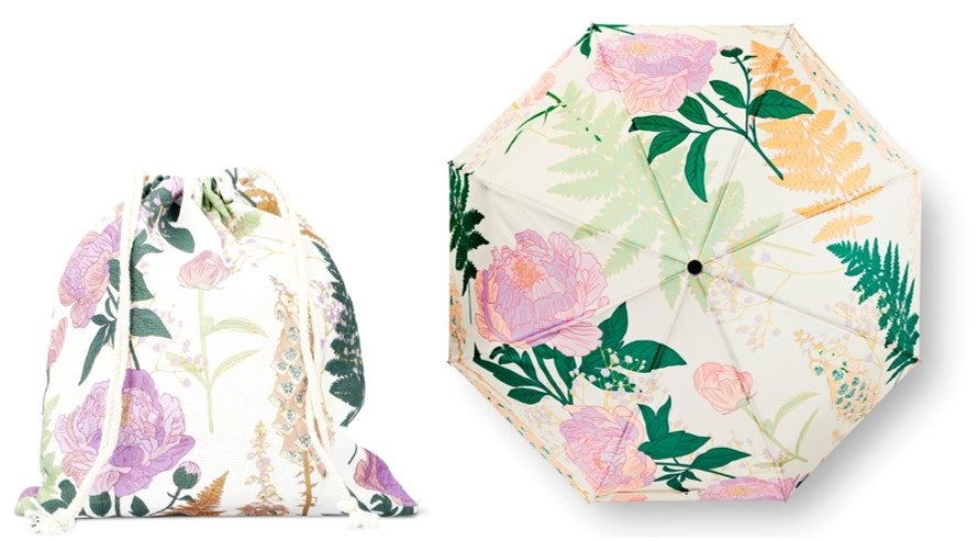 上品で大胆、大人っぽいフラワーデザインもあります!ちょっとしたポーチ代わりに巾着を、折り畳み傘もオシャレのワンポイントに。