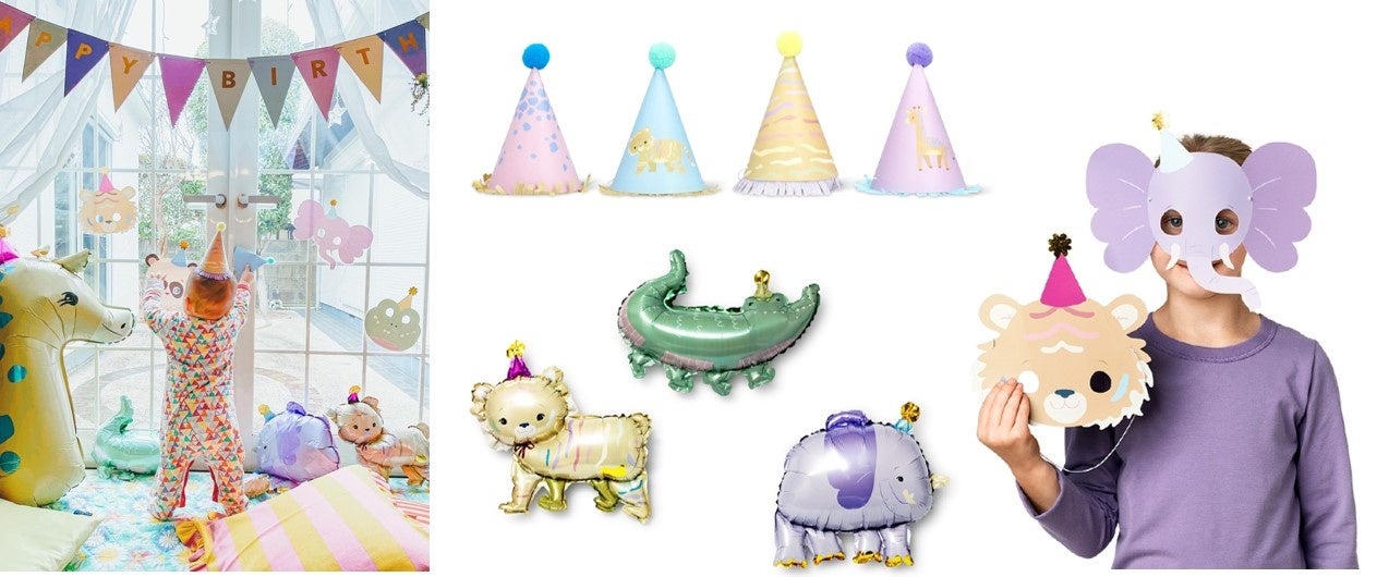 パーティーを盛り上げるアイテムもアニマルだらけ!パステルカラーでかわいい空間に。
