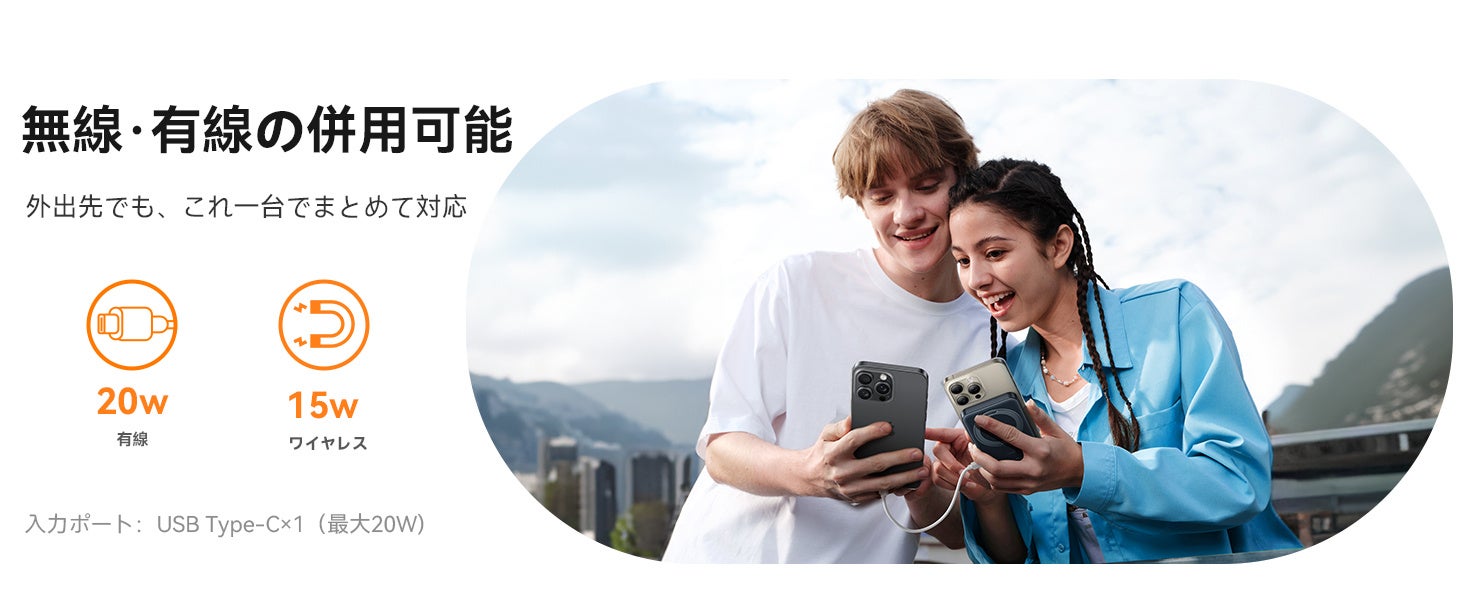 15Wの超高速充電と大容量!2台のデバイスの同時充電が可能