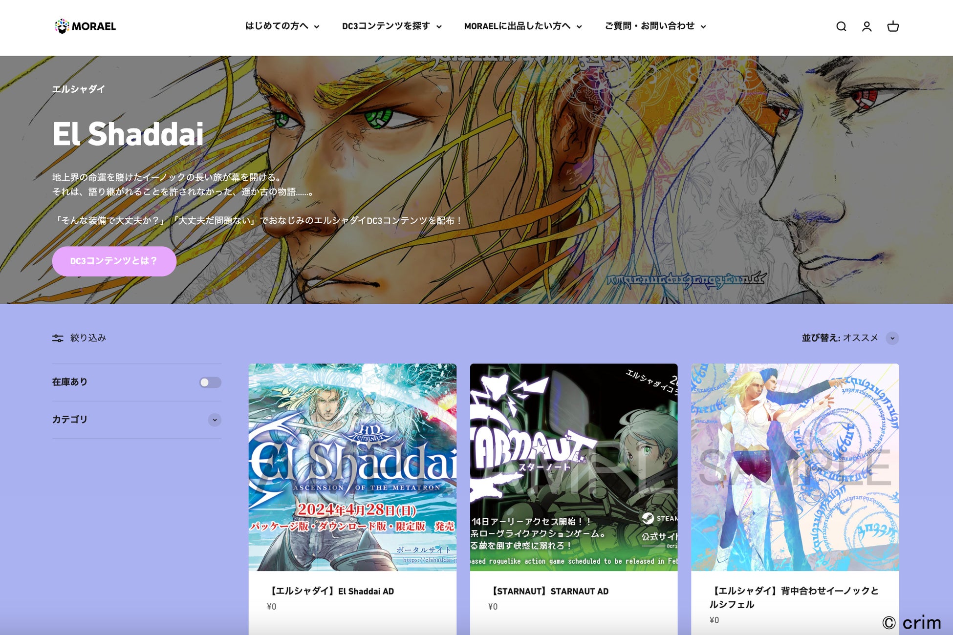2024年4月28日より、crimの作品のデジタルグッズをDC3コンテンツとして販売するECサイト「crim DC3 SHOP」をオープンします。