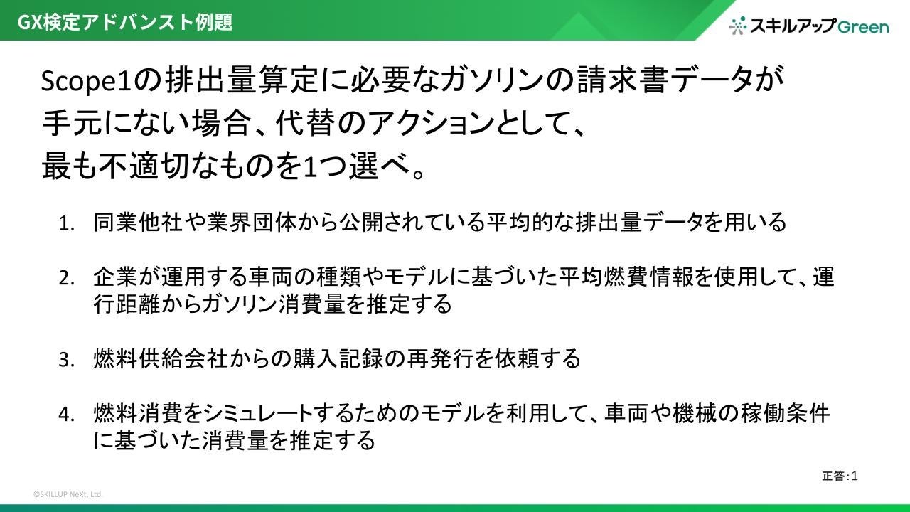 そこで、スキルアップNeXtはGHG排出量算定や開示など企業の脱炭素経営に必要な実践的スキルを習得したGX人材を育成するため、2023年より「GX検定アドバンスト」の提供を開始しました。