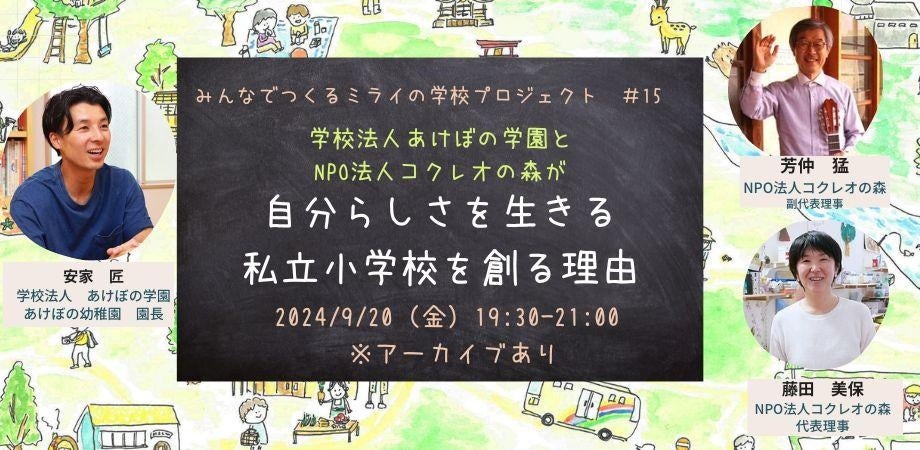 みんなで創る ミライの学校 プロジェクト #15 「自分らしさを生きる 私立小学校を創る理由」 ~学校法人あけぼの学園とNPO法人コクレオの森~