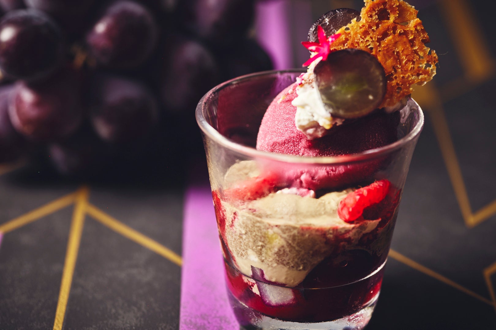 ・葡萄と梨 ほうじ茶クリームパフェ