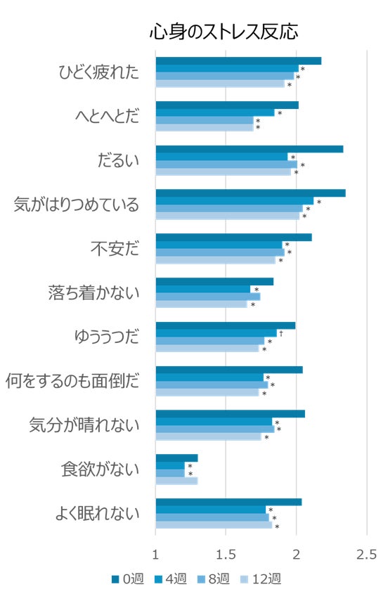 本調査では、「ネスレ ヘルスサイエンス睡眠プログラム」を開始後、心身のストレス反応の多くが有意に改善したことが確認されました。