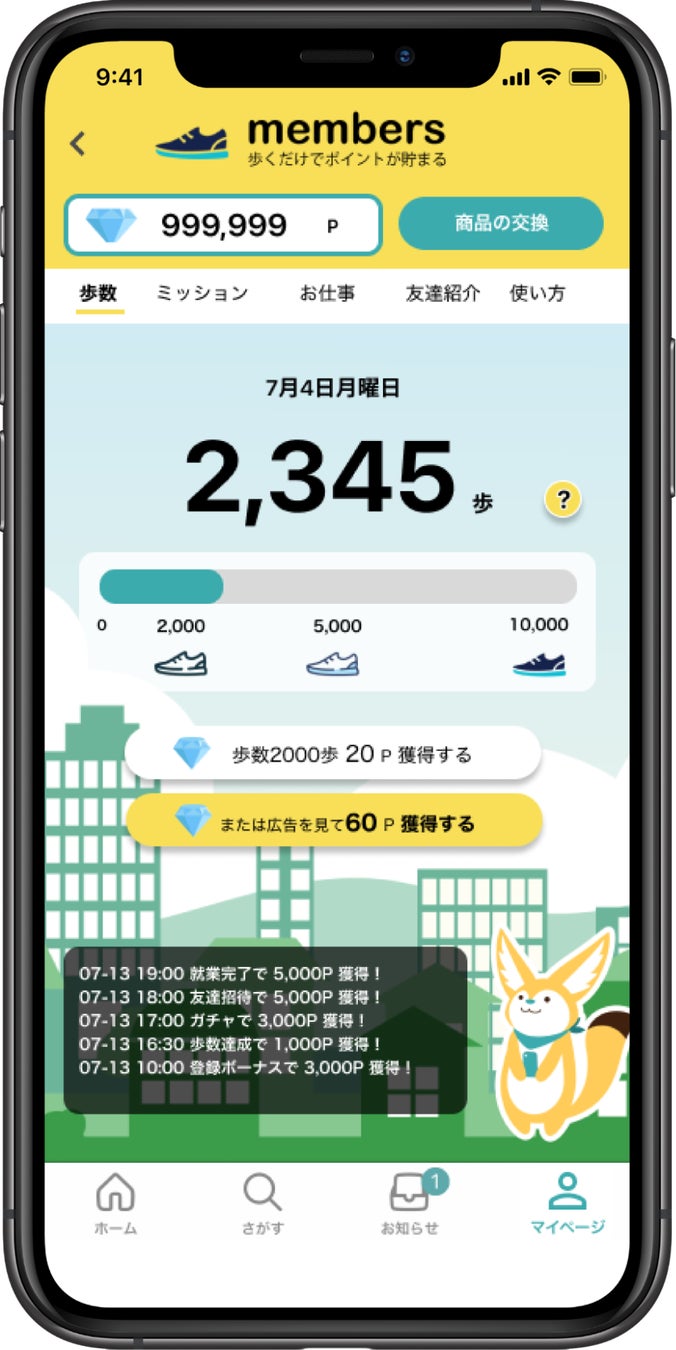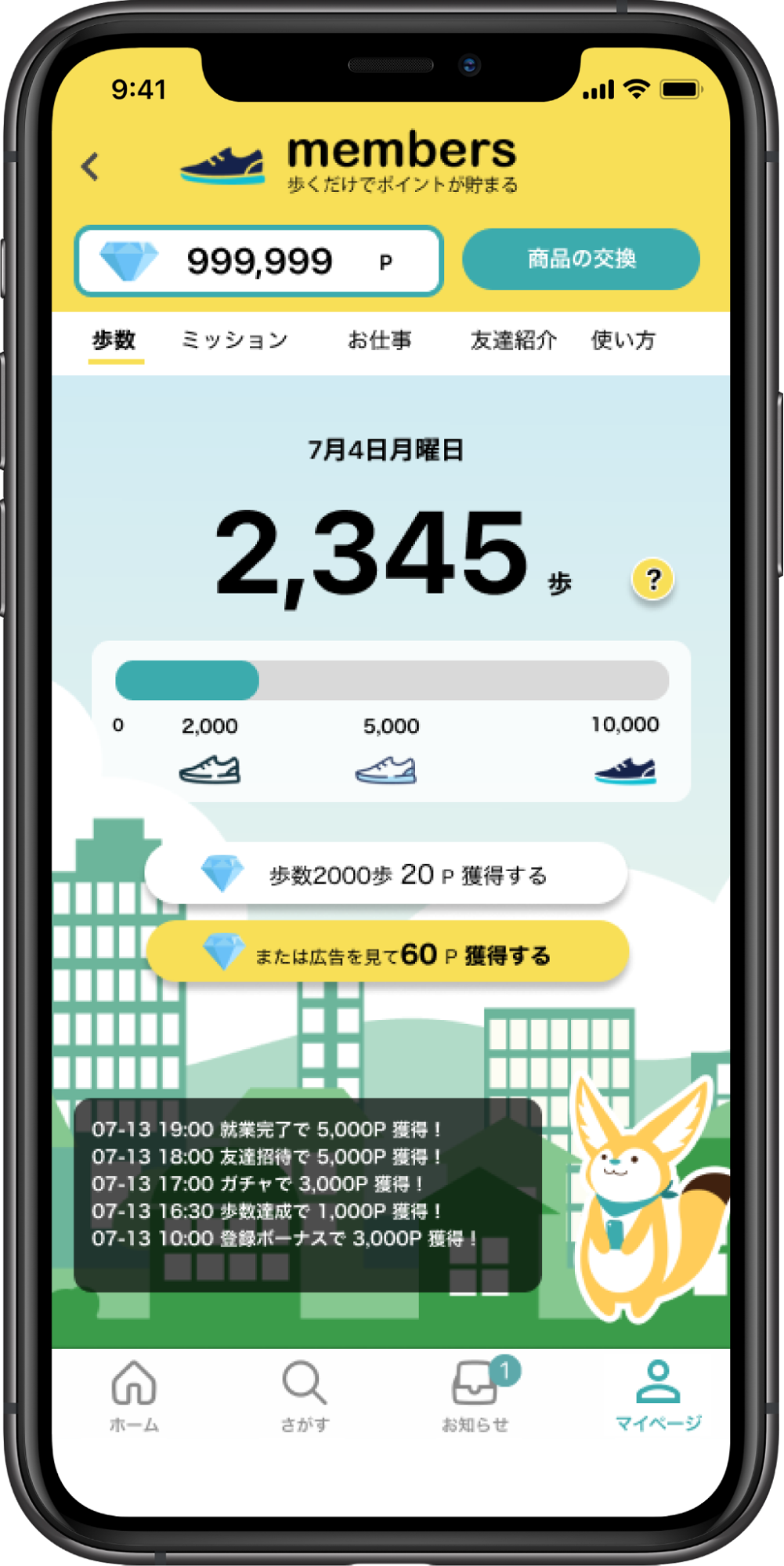「シェアフルmembers」に登録するだけで、『シェアフル』を使えば使うほどポイントが貯まり、さまざまなPayに交換できます。例えばその日歩いた歩数に応じてポイントがもらえたり、スクラッチくじを引くことでポイントがもらえたりすることができます。