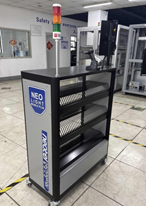 SMTスマートシェルフ「NEO LIGHT」は、入庫時にはLEDとセンサーで入庫の棚を指定し部品を配置、出庫時はLED表示により視覚的にかつ、正確なピッキングを行うことで、手作業によるピッキング時間を従来より大幅に短縮できます。