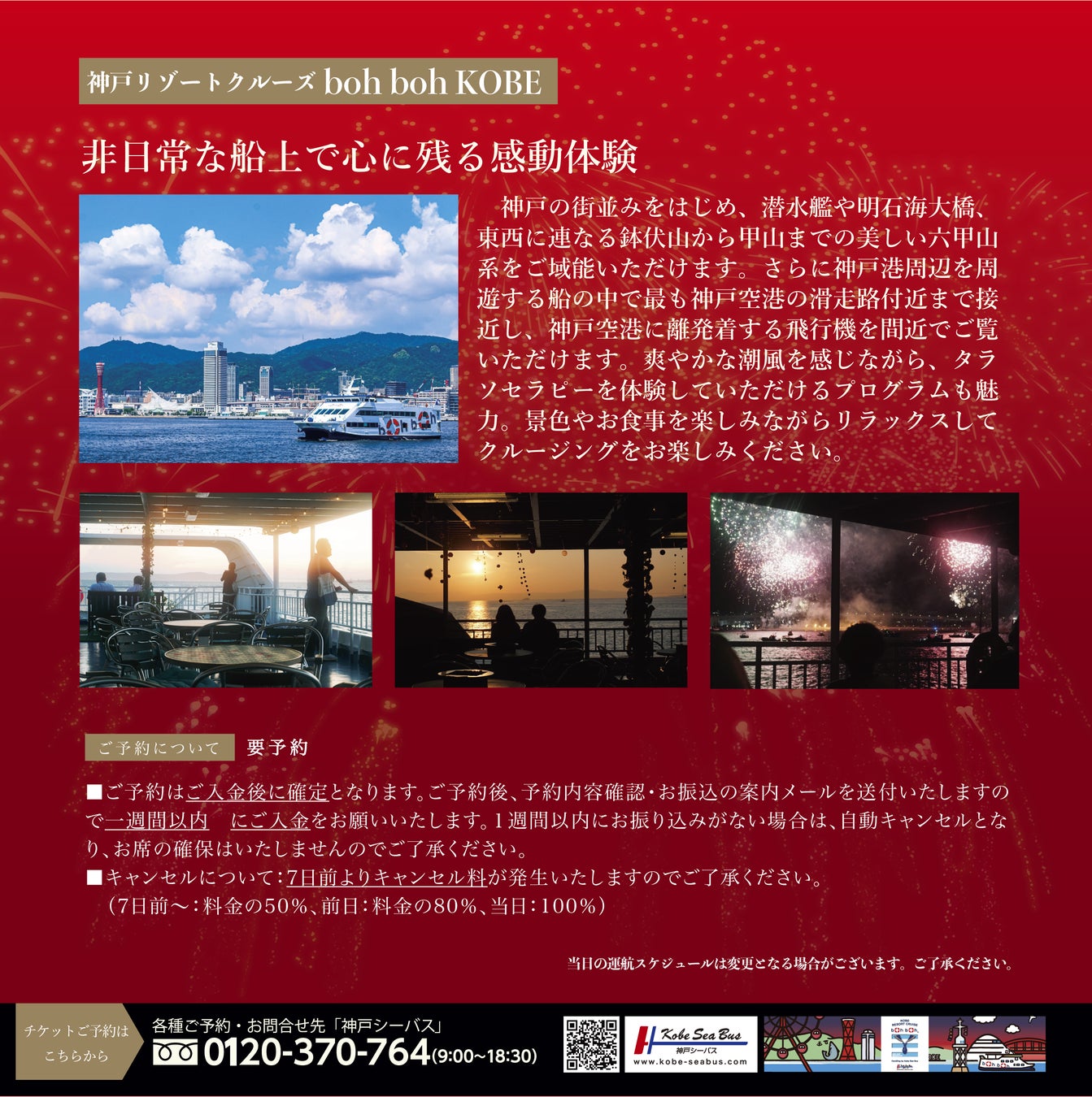 ご 予 約 :「神戸シーバス」 0120-370-764(9:00~18:30)