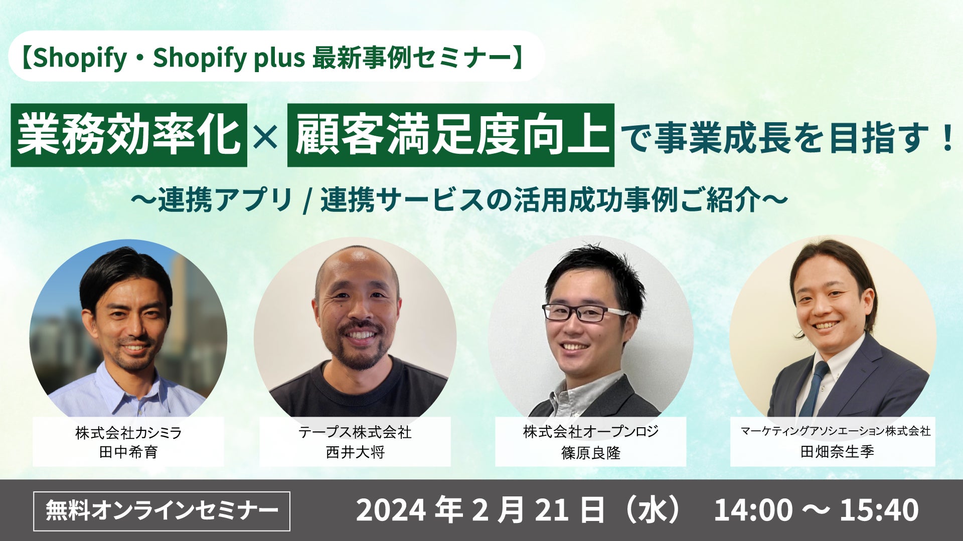 名称:【Shopify・Shopify plus最新事例セミナー】 業務効率化×顧客満足度向上で事業成長を目指す! ~連携アプリ/連携サービスの活用成功事例ご紹介~
