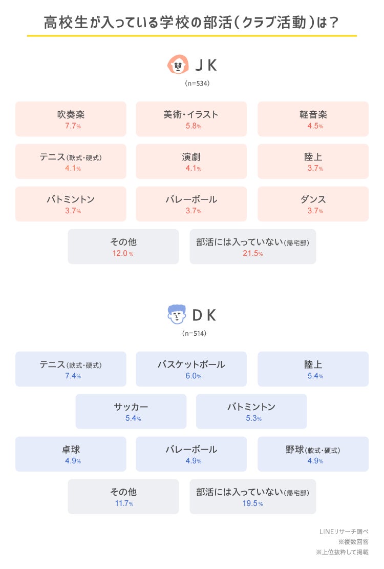 このたびLINEリサーチでは、日本全国の高校1年生~3年生の男女を対象に、高校生の部活に関する調査を実施しましたので、その結果をお知らせします。