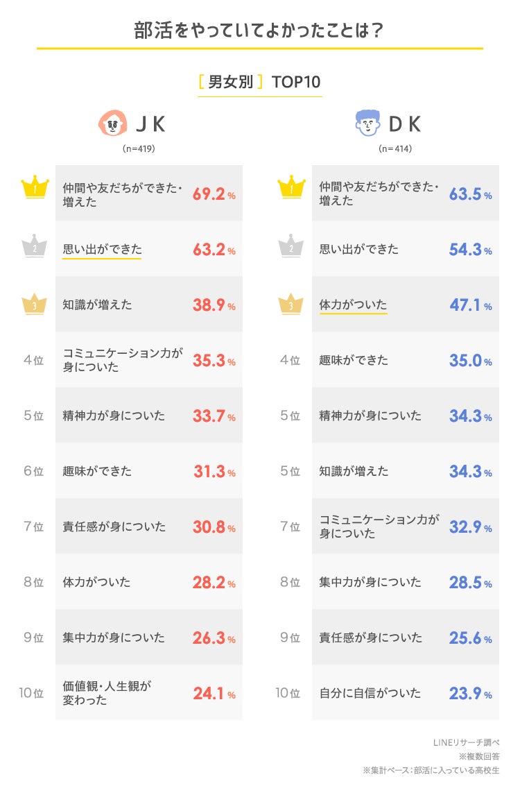 【LINEリサーチ】高校生が部活をやっていてよかったこと1位は「仲間や友だちができた・増えた」