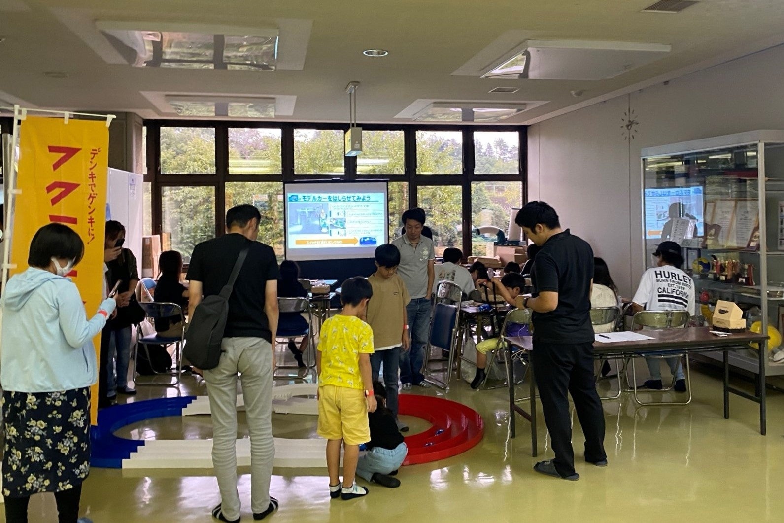 また、屋内では「日産わくわくエコスクール」も実施。地球環境問題と自動車産業の環境技術の取り組みを学び、自分で発電した電気でモデルカーを走らせる実験を行いました。
