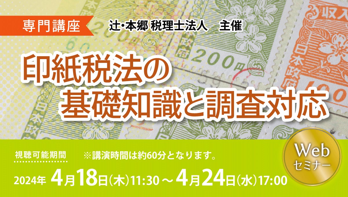 辻・本郷 税理士法人(本社:東京都新宿区、理事長:徳田孝司)は、2024年4月18日(木)より「【専門講座】印紙税法の基礎知識と調査対応」セミナーを開催いたします。1通200円の不納付であっても、過怠税として数千万円単位で追徴されるおそれのある印紙税調査について、顧問先が調査を受けた場合の心構えや留意事項等を、調査担当者の視点を交えて解説します。
